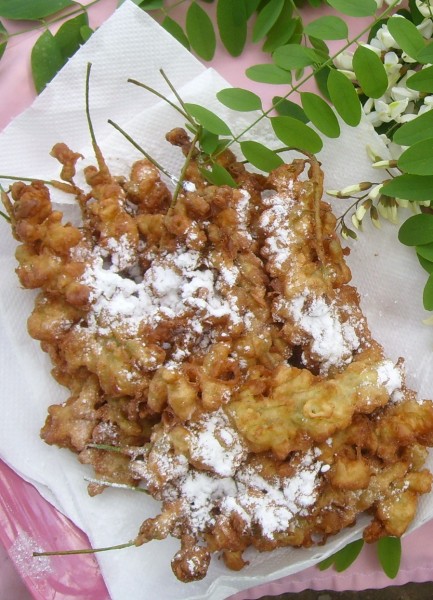 – Les fleurs du robinier sont utilisées en parfumerie et sont parfaitement comestibles. On en fait de délicieux beignets en trempant les grappes entières dans de la pâte reposée et préparée en mélangeant 300 g de farine, 3 oeufs, 25 cl de lait, 20 cl de bière blonde, une pincée de sel et un sachet de sucre vanillé. Une fois frits, ils seront déposés sur du papier absorbant et saupoudrés de sucre glace.