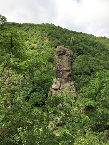 Au détour d’un virage, un rocher attire le regard. Les pieds dans la rivière, la roche de Péréandre monolithe de granite, s’élève sur 39 mètres de haut, le site est devenu le terrain de jeu privilégié des escaladeurs. Une aire de pique-nique permet même d’observer à loisir cette curiosité géologique ainsi que la rivière.