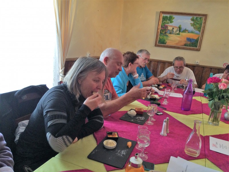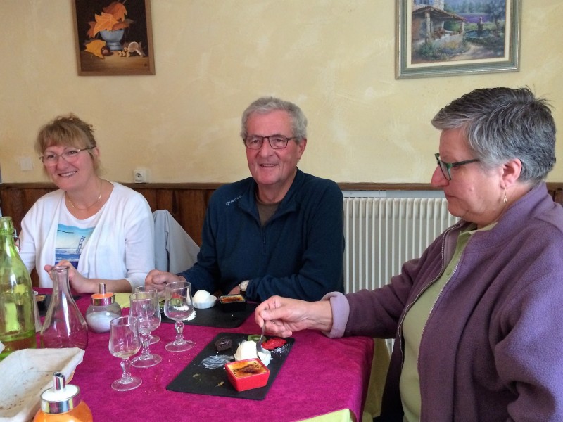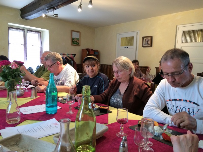 Ensuite retour par les hauteurs du Pilat soit un circuit de cent cinquante kilomètres pour retrouver les marcheurs pour partager ensemble le repas de midi au restaurent le Mélimélo de Longes.