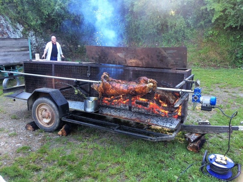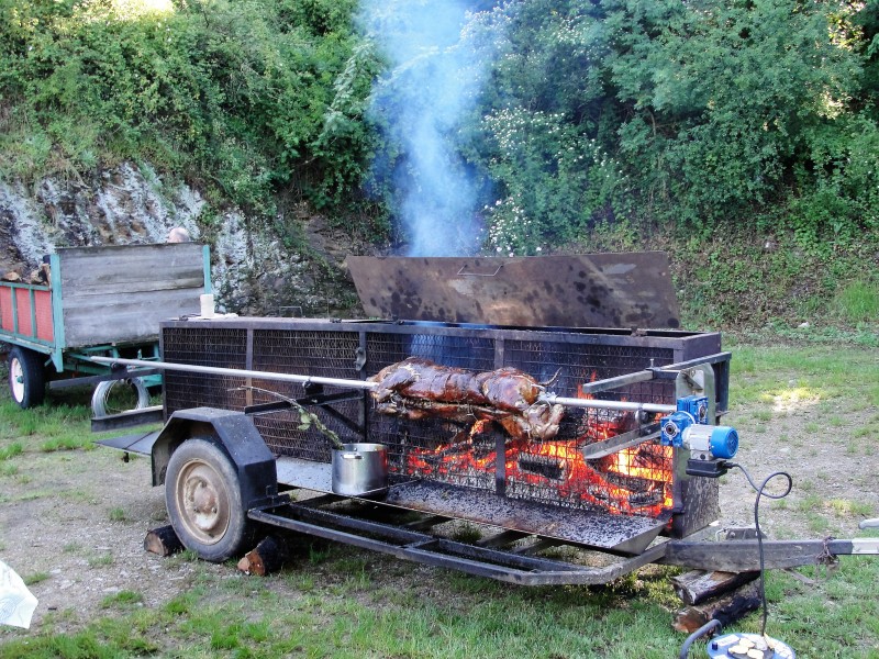 L’heure était venue de passer à table pour déguster un superbe cochon à la broche préparé par Le Moulin des Chartreux de Saint Croix en Jarez.