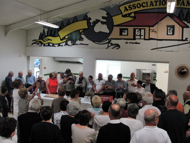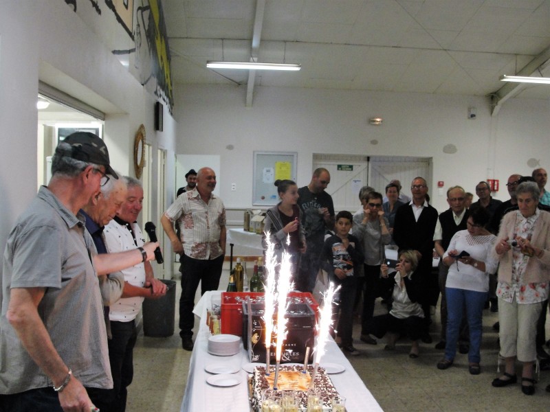 L’après midi les amateurs de pétanque se sont retrouvés sur le terrain des Pervenches, tandis que d’autres ont parcouru documents et les nombreuses photos souvenir de l’association, cette journée a pris fin autour du gâteau d’anniversaire et de sa coupe de Champagne.