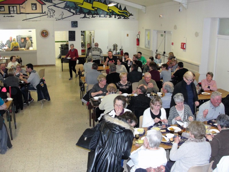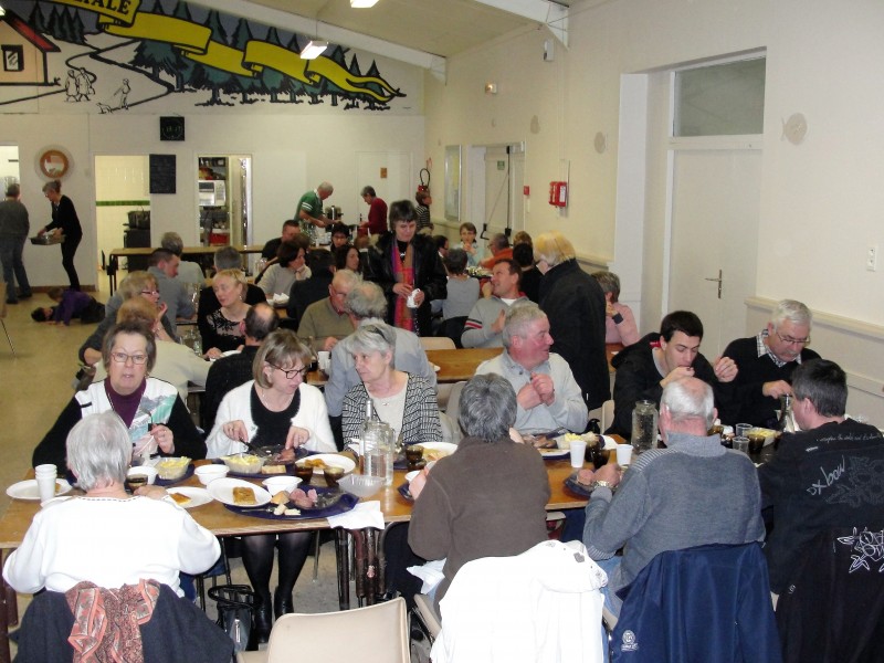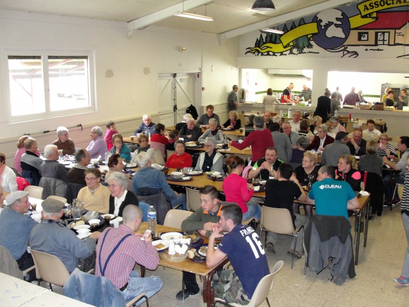 Cette année encore toute l’équipe était sur le pied de guerre dès sept heures du matin pour préparer les cinquante kilos de saucisson à cuire, les trente kilos de pomme de terre et les vingt cinq kilos de frites, ce sont donc cent cinquante personnes qui sont venus partager ce repas dans une ambiance très convivial, certain ont même prit rendez-vous pour le prochain saucisson.
