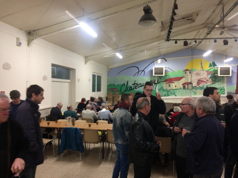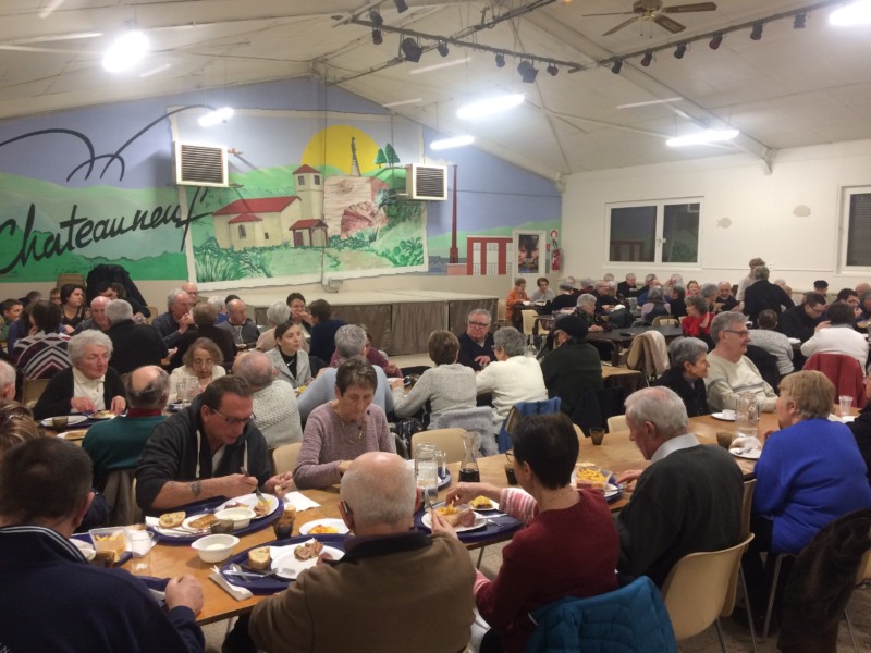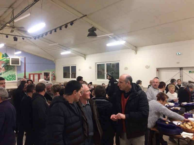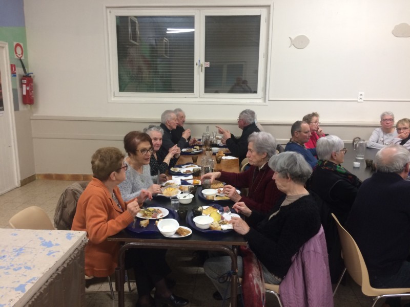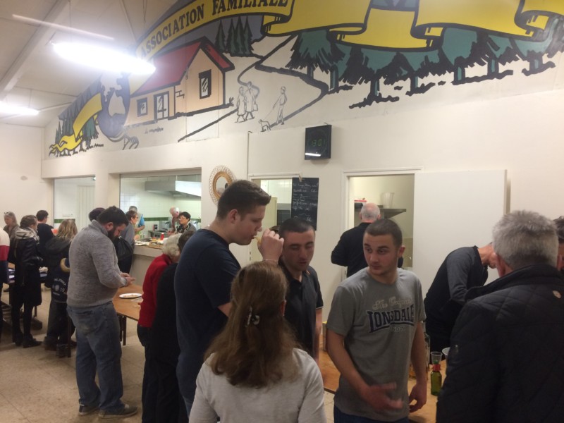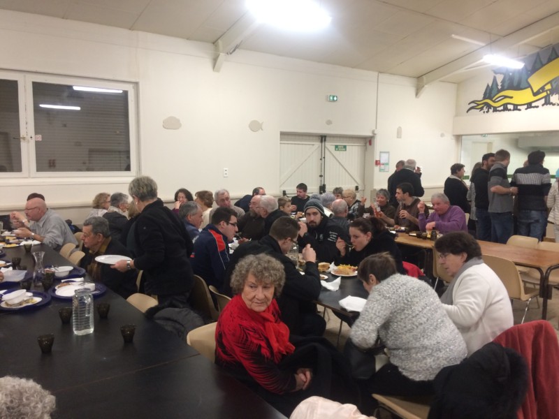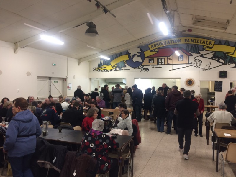 Pour ce saucisson du dimanche 11 février 2018 organisé par l’association familiale salle des Pervenches, 25 kg de frites, 35kg de pommes de terre, 170 fromage blanc ou sec et 170 parts de tartes furent nécessaires pour régaler les 170 personnes venues partager ce repas bien au chaud dans la salle.