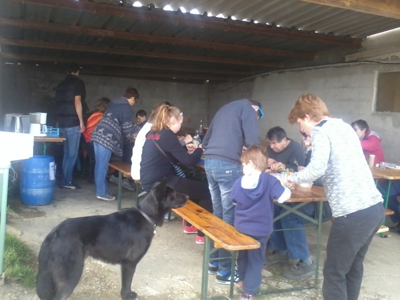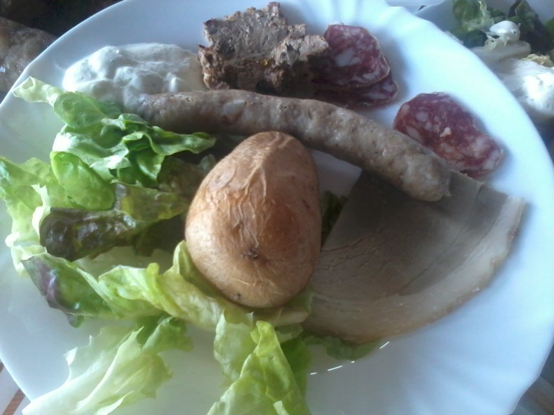 Après un verre offert nous sommes passés à table, charcuterie, pommes de terre, fromage et yaourt maison.
