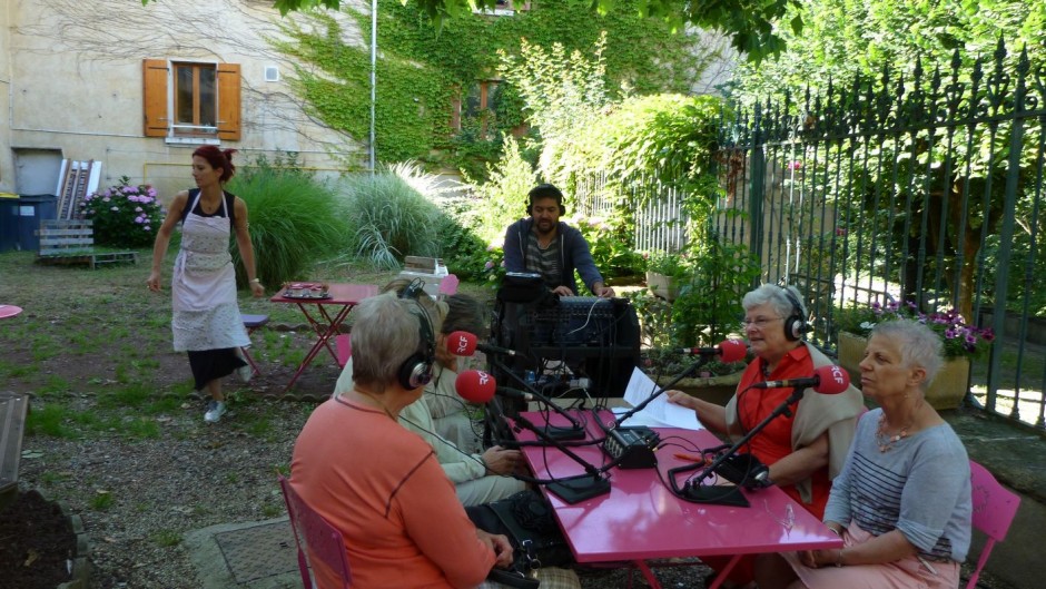 Comme annoncé, le mardi 28 juin, RCF (Radio Chrétienne Francophone, Radio de St Etienne) a posé son studio mobile au Château du Mollard, chez Laurence ZIMMERMANN (restaurant Savoir et mets). Comme le soleil était de la partie, l’equipe de bénévoles de « Gier-infos » et le technicien venu de St Etienne se sont installés en extérieur dans le patio du restaurant. Tout était réuni pour faire de bonnes émissions, même si quelques intervenants étaient un peu tendus en arrivant devant les micros ! L’ambiance étant décontractée…le stress du début ne durait pas longtemps.