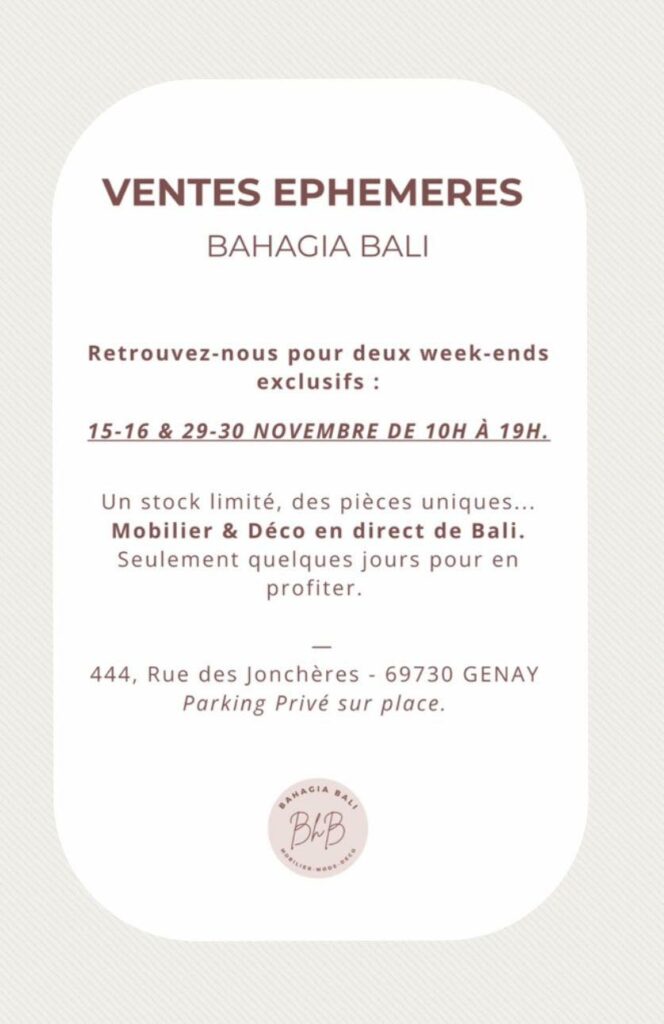 Envie d’exotisme dans votre intérieur ? Bahagia Bali vous invite à découvrir ses ventes éphémères à Genay pour deux week-ends exclusifs :