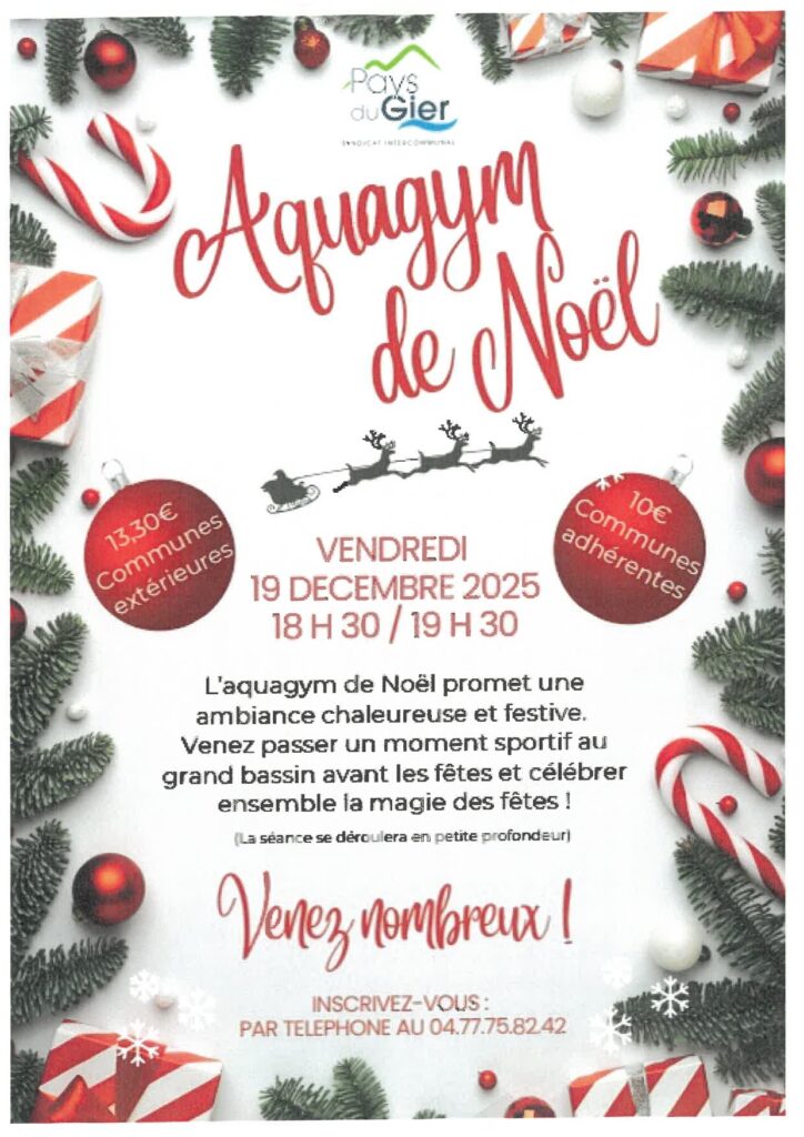 Le Pays du Gier et le SYNDICAT INTERCOMMUNAL vous invitent à célébrer la magie des fêtes de fin d’année d’une manière originale et sportive : une séance spéciale d’Aquagym de Noël!